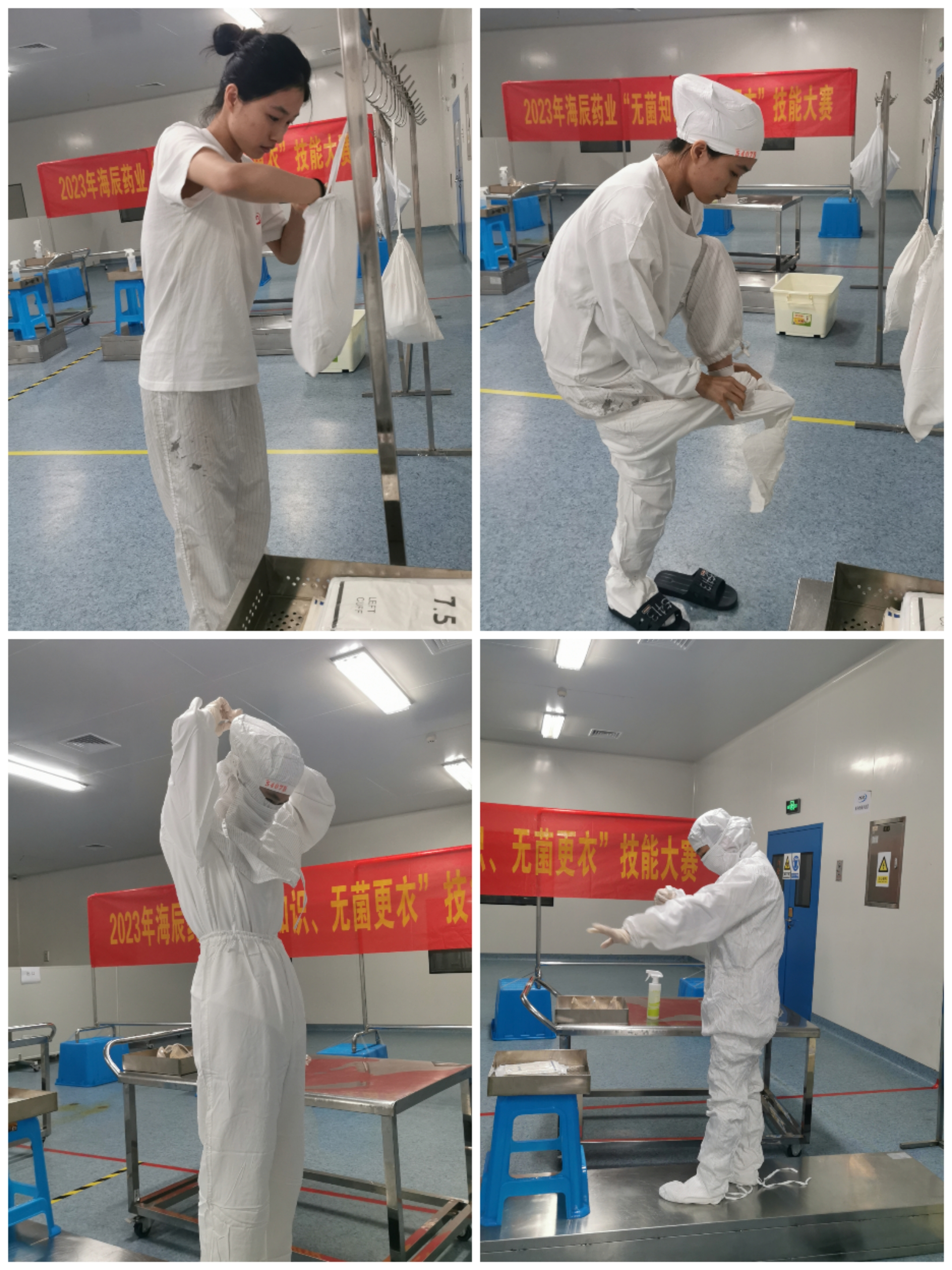 下午13:00,无菌更衣技能竞赛正式开展,比赛现场充满了紧张而又有序的气氛。参赛员工们身穿整洁的工作服,精神饱满地等待着发令员的哨响。他们的脸上洋溢着自信和严谨,对于接下来的比赛充满了期待。