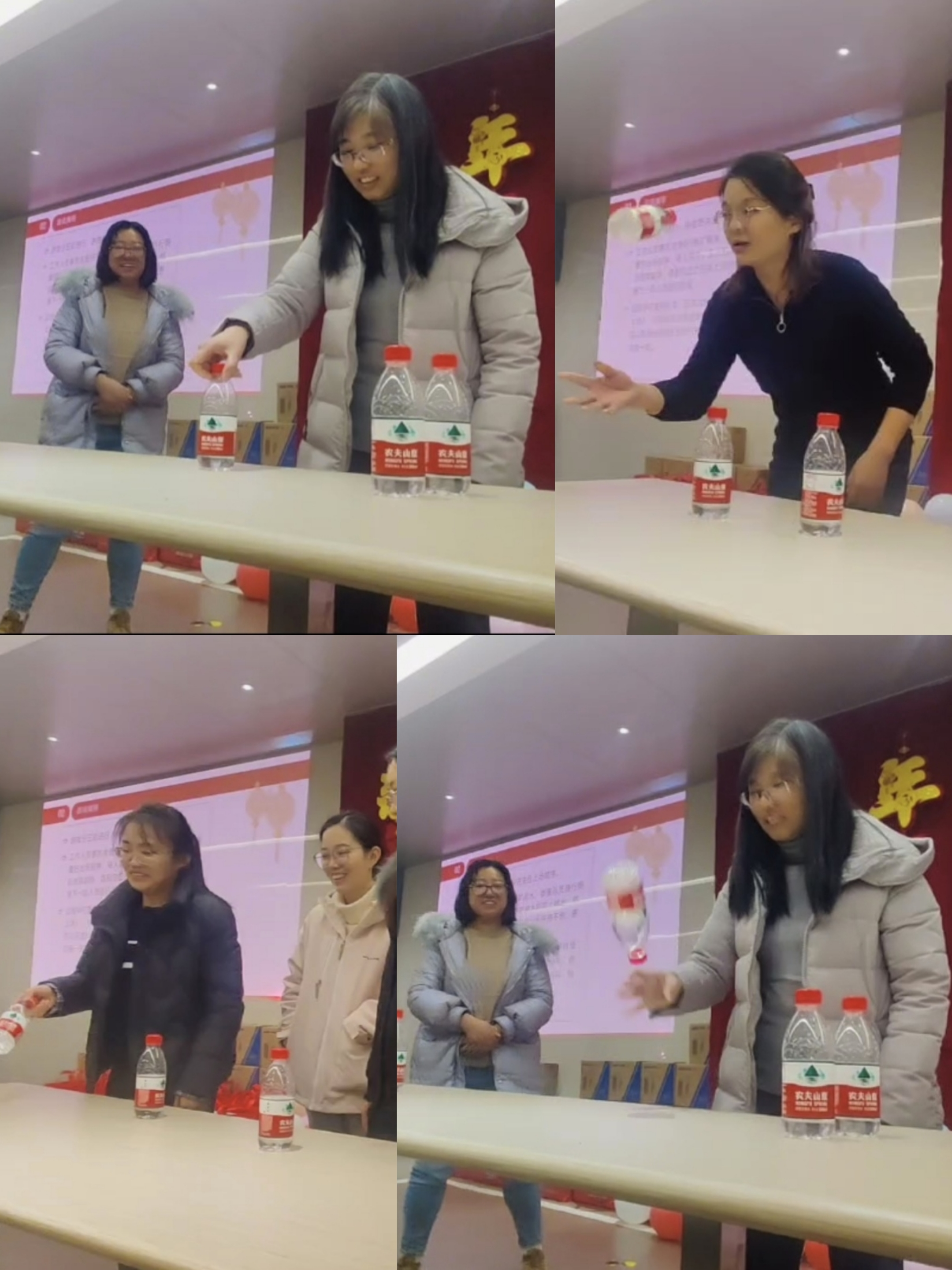 抛水瓶游戏是本次联欢会的第一个游戏,每个参赛者手持水平,在主持人的一声令下,参赛者需将手中的水瓶向上抛起,使其翻转后正立在桌面上。这个游戏考验了参赛者的调整能力和平衡能力。.png)